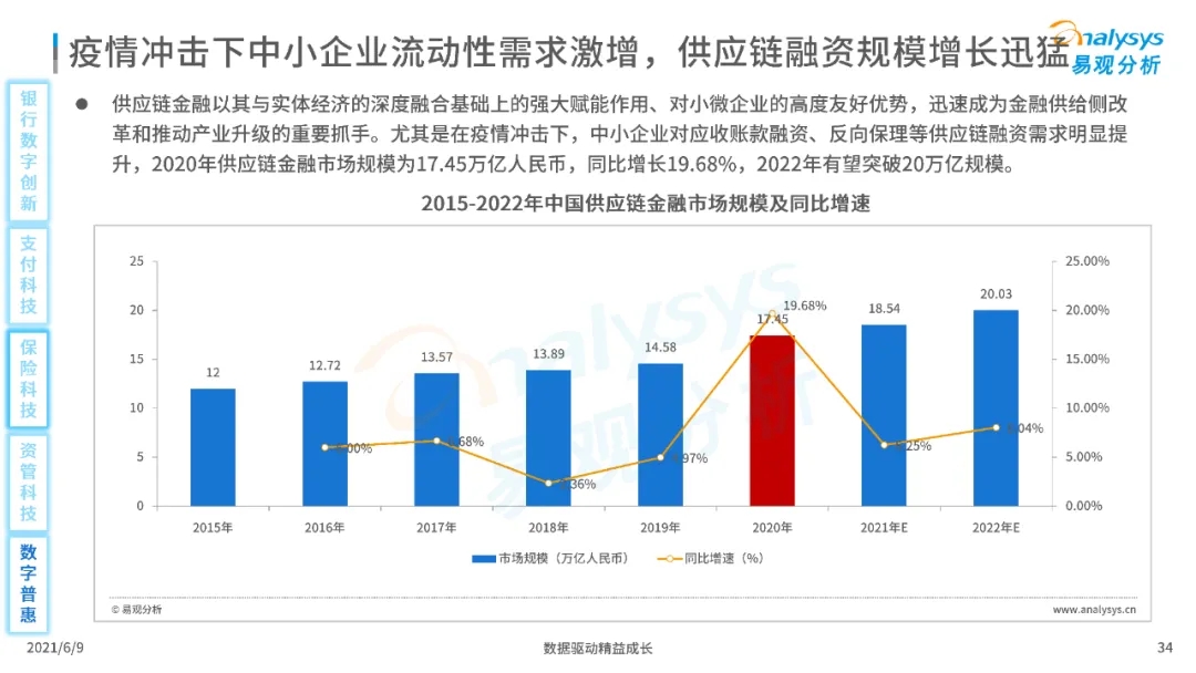 以大数据、人工智能、物联网、区块链等为代表的数字科技驱动金融产业数字化方兴未艾,数字科技使得金融和科技两个领域产生更紧密的场景联结,使得数字科技服务可以更早、更有效地介入到金融产业增长模型中去,更早的融入到企业和个人的资产生成过程,并从根本上提升金融机构资产透视能力和资产定价能力,帮助金融机构和实体部门降低成本、提升效率、增强用户体验及优化业务模式。