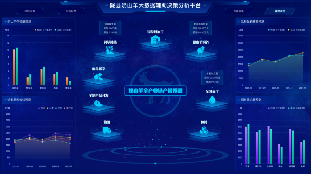 “世界羊奶看中国,中国羊奶看陕西”。随着近年奶山羊产业的快速发展,长期存在的良种缺乏、奶源短缺、疫病多发、质量不稳、生产无序、经济效益低、产业发展决策缺乏数据支撑等问题越来越突出。由神州信息承建的建立陇县奶山羊大数据服务平台,充分发挥大数据、云计算、物联网、人工智能等数字化技术优势及在产业链中的应用,以“数字技术+数据要素”双轮驱动融合创新,涵盖奶山羊全产业链数据资源的采集、分析、应用和服务体系。平台上线运营以来,从政府管理上来看:协助陇县摸清家底、掌控生产过程,提高对羊奶的质量安全监管,提高对问题食品的发现和处理能力,防止重大安全事件的发生与蔓延,保护品牌,提高对奶山羊产业的管理服务能力及科学决策水平;从经营主体生产上来看:有效提高了养殖企业(户)的标准化养殖水平,使试点企业奶山羊的产奶量提高了15%左右,投入品降低了12%,有效提升了企业效益。