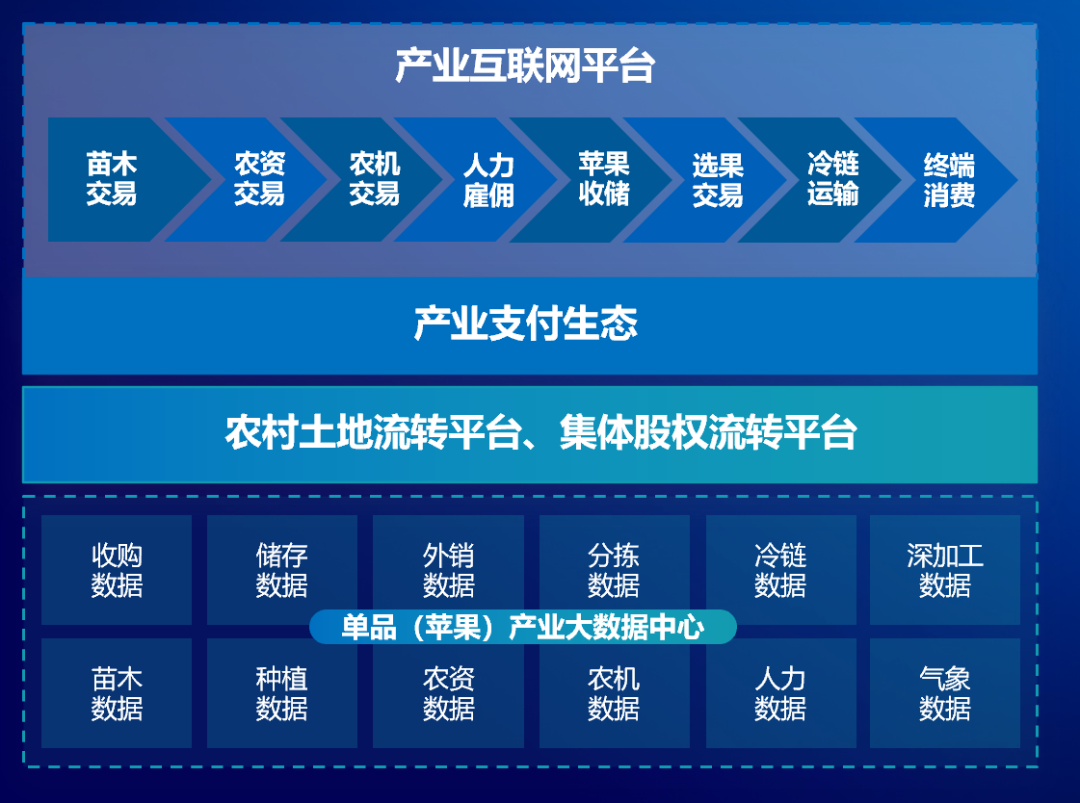 “苹果全产业链金融服务”模式,在陕西洛川依托国家级苹果大数据平台,落地通过仓单质押,为农户农企授信,助力金融机构实现授信超5亿、放款4.5亿。陕西省眉县弥猴桃大数据,通过产业金融模型,为农户农企授信,助力金融机构实现为2万户授信超3亿、放款2.6亿。